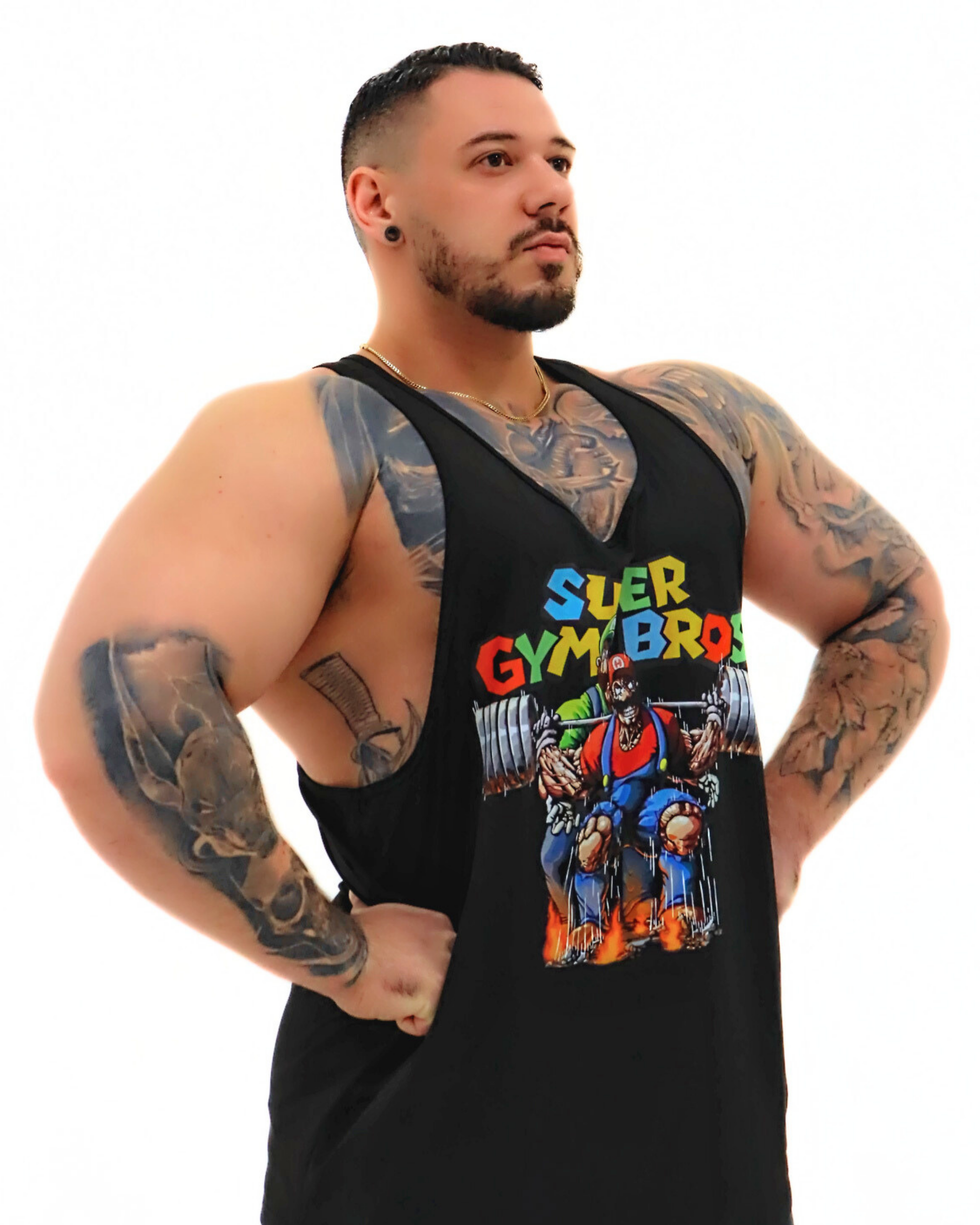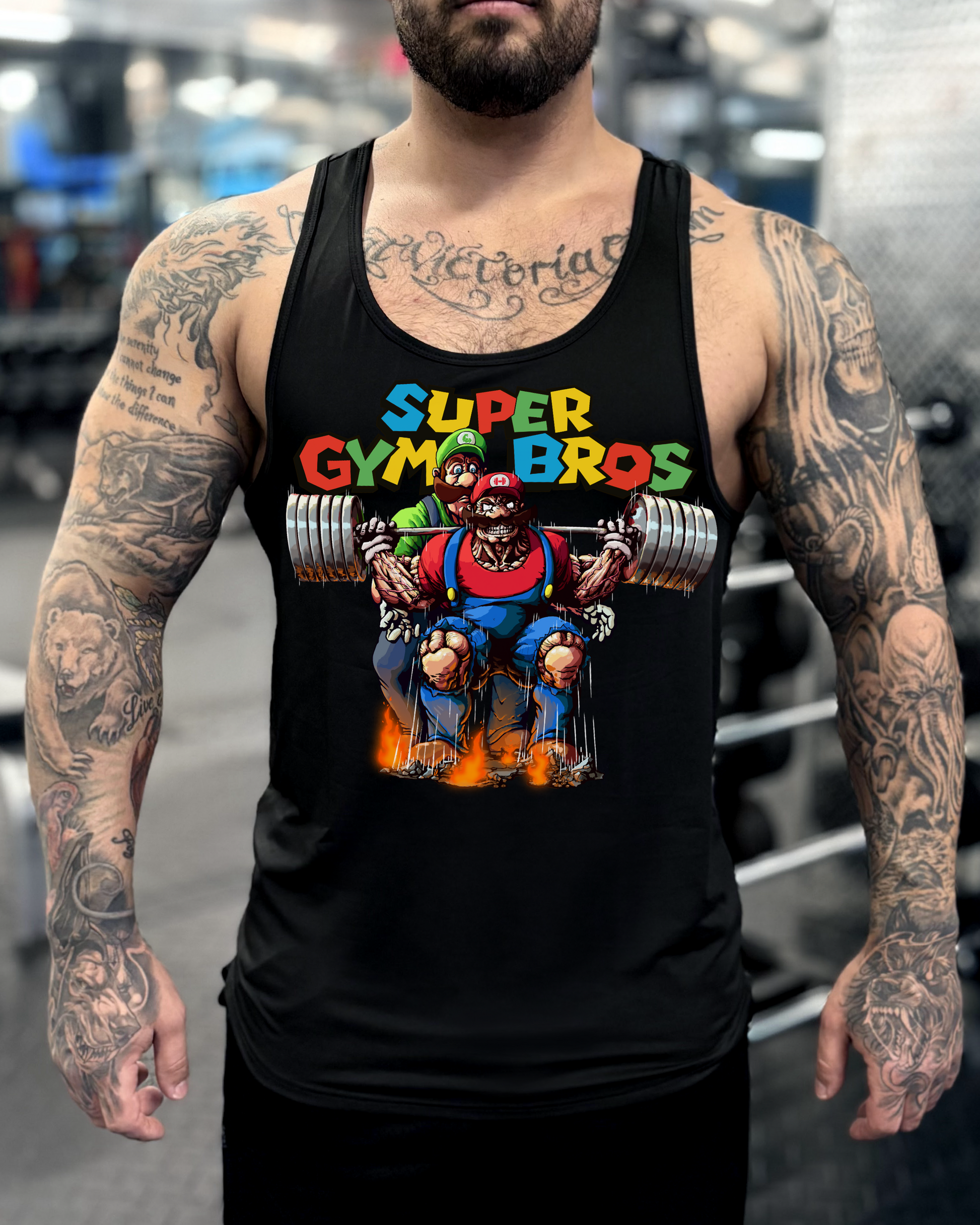 This unique design from UMC Apparel features two of the most iconic video game brotherhood characters of all time: Mario and Luigi. But instead of their traditional adventures through Mushroom Kingdom, we've reimagined them as powerful gym brothers, ready to dominate their workout session in style. With oversized muscle mass and intense determination, these Super Gym Bros are lifting heavier, pushing limits, and getting gains like never before.